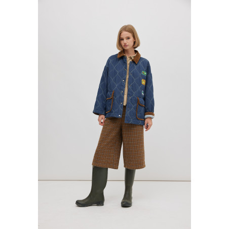 Veste matelassée denim, col velours et patch Miss Carla
