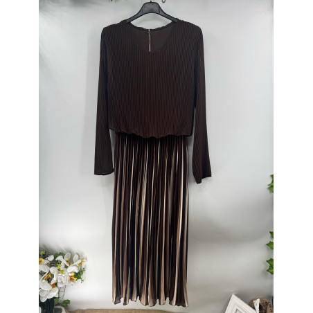 Robe longue plissée rayée col rond manches longues Emporium