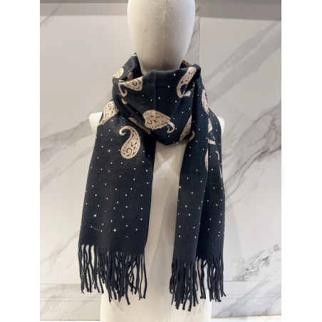 Écharpe broderies cachemire et strass