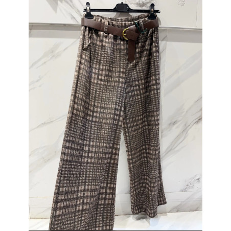 Pantalon doux et large à carreaux avec ceinture Miss Carla