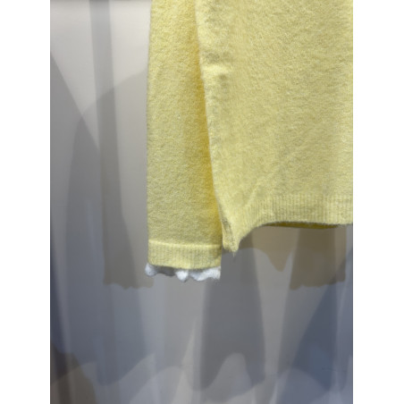 - Manches longues avec maille contrastées en bouts de manches.