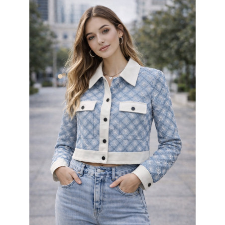 Veste jean brodé sequins et simili cuir Amy & Clo