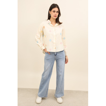 Chemise coton avec fleurs brodées multicolores Inspiration Studio