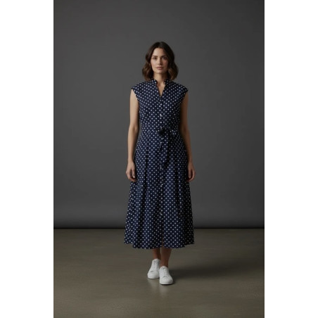 Robe longue à pois col officier sans manche Sweet Miss