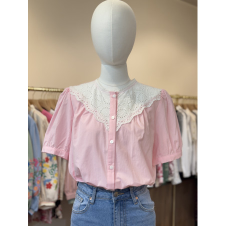 Chemise manches courtes plastron brodé col rond Cerise Blue.