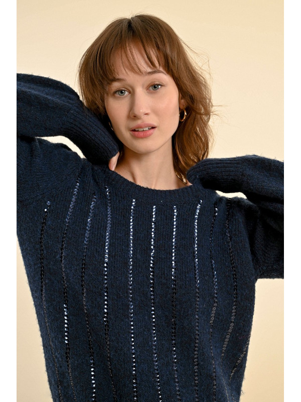 Pull avec sequins col rond  manches longues Molly Bracken.