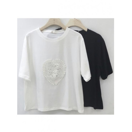 T-shirt col rond manches courtes oversized coeur en guipure Luce-shop Collection