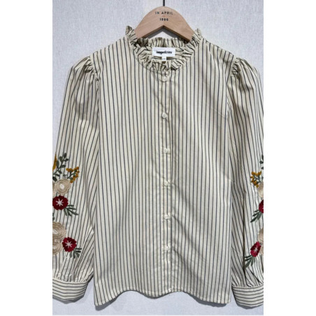 Chemise rayée col frou-frou manches longues brodées Luce-shop Collection
