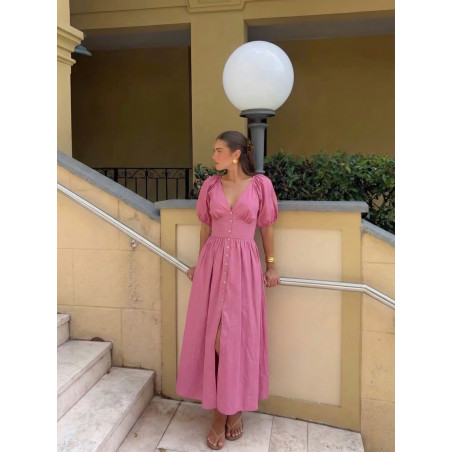 Robe longue boutonnée dos-nu manches courtes ballon Copperose