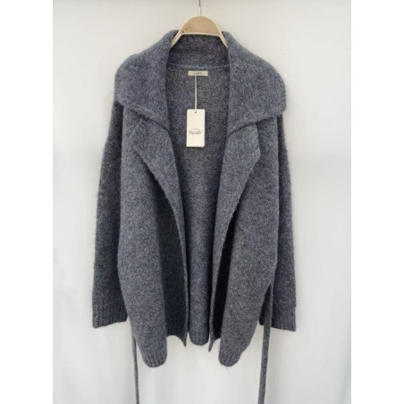 Gilet mi-long en maille avec ceinture et double col It Hippie