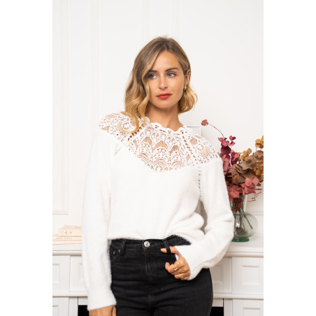 Pull en maille mousseuse et dentelle ajourée Kilky