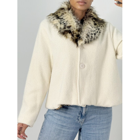 Veste doublée imprimé léopard col fourrure Carla Giannini