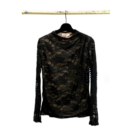 Top en guipure manches longues ras de cou
